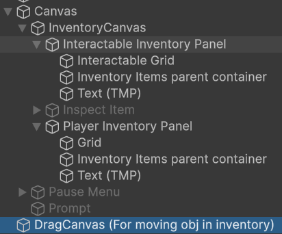 To prevent collisions and interference with other UI elements or inventory slots, all held items are parented to a dedicated DragCanvas.