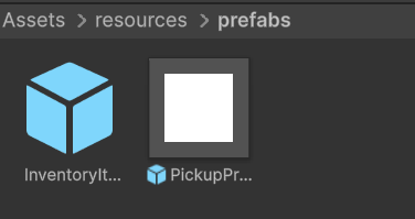Dropping the item into the game world required that I use the resources asset folder