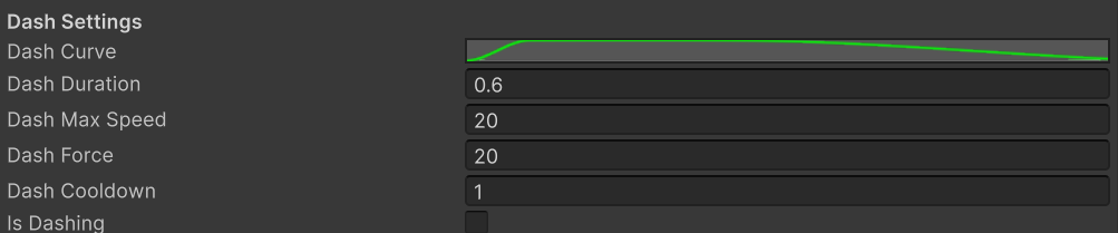 Using an animation curve to modulate dash velocity makes the movement feel smooth and satisfying, with acceleration and deceleration baked in.