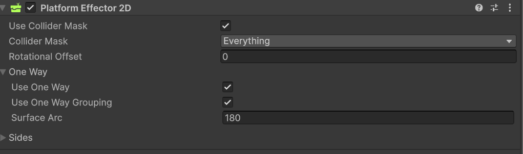 Platforms that the player can jump up through and land on from above add flexibility without overcomplicating the controls. Players can also intentionally fall through them when needed, which requires careful collision handling and temporary collider disabling.